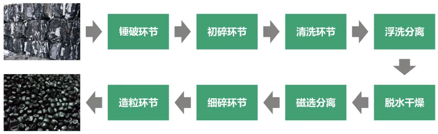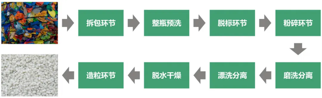 整套設(shè)備從拆包到破碎-清洗-除紙-除橡膠-干燥-分離瓶嘴料均可全自動(dòng)化流水生產(chǎn)。生產(chǎn)出來的成品顆粒基本達(dá)到了新料的品質(zhì),廣泛用于注塑擠出、加工造粒等領(lǐng)域。