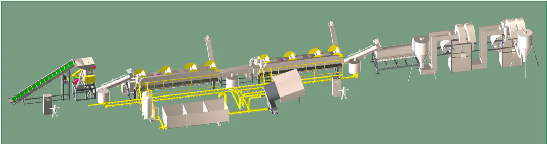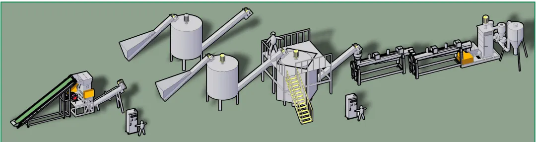 此套清洗回收生產(chǎn)線主要應(yīng)用于回收汽車內(nèi)外飾塑料件、中空包裝桶、廢舊物流托盤、家電外殼(ABS、PS脫漆清洗)等方面。根據(jù)不同的物料特性,設(shè)計(jì)針對(duì)性的回收方案。提供配套的分揀輸送帶、高速清洗機(jī)、塑料表面不干膠標(biāo)簽的去除、金屬分離器、水循環(huán)處理系統(tǒng)等。